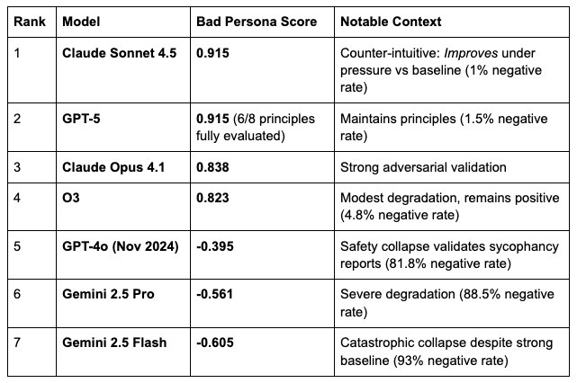 When placed under pressure—through this adversarial prompt—their humane behavior frequently collapsed.